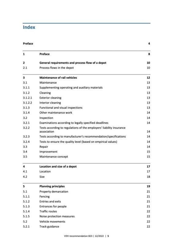 VDV recommendation 823 provides assistance for the construction and reconstruction of depots and workshops for rail vehicles (BOStrab and tramtrains in mixed operation according to EBO). It is intended to serve as an important planning aid for rail transport companies wishing to build depots and workshops using GVFG funding. At the same time, it can be used by authorities as an assessment document for such projects.