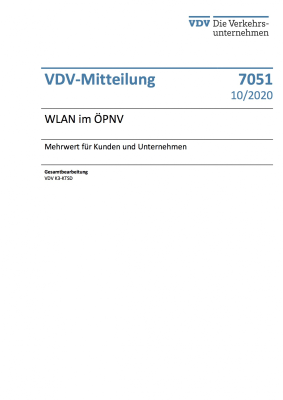 VDV-Mitteilung 7051 WLAN im ÖPNV – Mehrwert für Kunden und Unternehmen [Print]