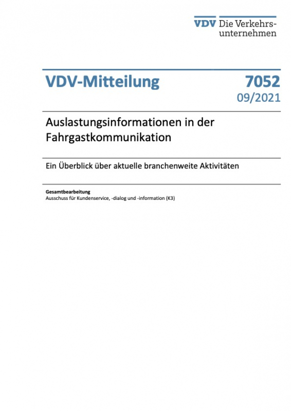 VDV-Mitteilung 7052 Auslastungsinformationen in der Fahrgastkommunikation - Ein Überblick über aktuelle branchenweite Aktivitäten
