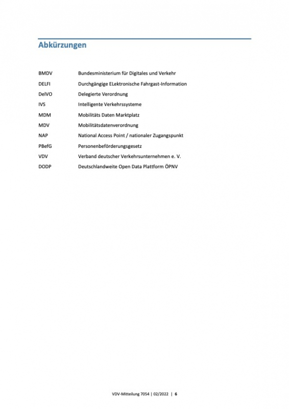 VDV-Mitteilung 7054 „Umsetzung der Mobilitätsdaten-Verordnung in der Praxis - Aktueller Status, Ausblick & Antworten auf häufig gestellte Fragen“ [PDF]