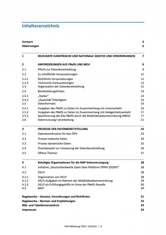 Die VDV-Mitteilung 7054 setzt exakt hier an und möchte durch knappe aber gezielte Information Aufklärung und Unterstützung leisten. Es soll eine erste Orientierung im Wirrwarr der vielen Fragen rund um den Umgang mit den Anforderungen der PBefG-Novelle und der Mobilitätsdatenverordnung in der Praxis von Verbünden und Verkehrsunternehmen bieten.