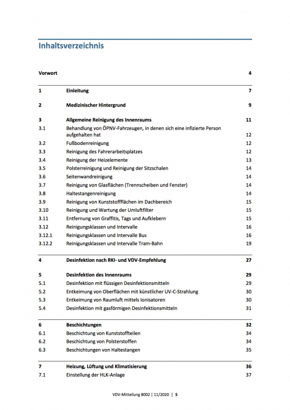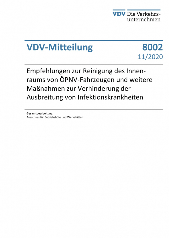 VDV-Mitteilung 8002 Empfehlung zur Reinigung des Innenraumes von ÖPNV-Fahrzeugen und weiter Maßnahmen...[Print]