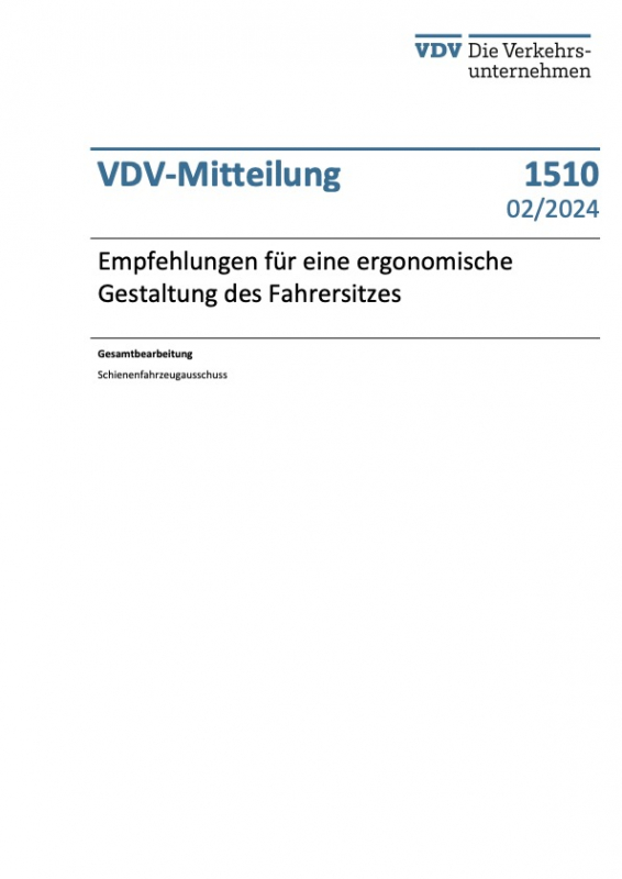 VDV-Mitteilung Nr.1510: „Empfehlungen für eine ergonomische Gestaltung des Fahrersitzes“ [Print]