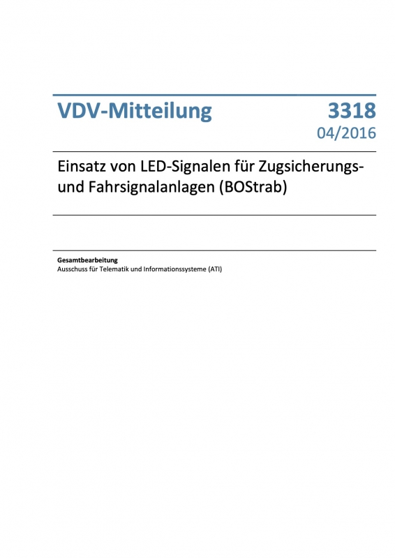 VDV-Mitteilung 3318 Einsatz von LED - Signalen für Zugsicherung- und Fahrsignalanlagen (BOStrab)