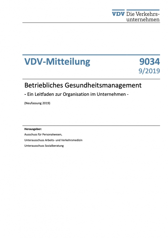 VDV-Mitteilung 9034 Betriebliches Gesundheitsmanagement - Ein Leitfaden zur Organisation im Unternehmen