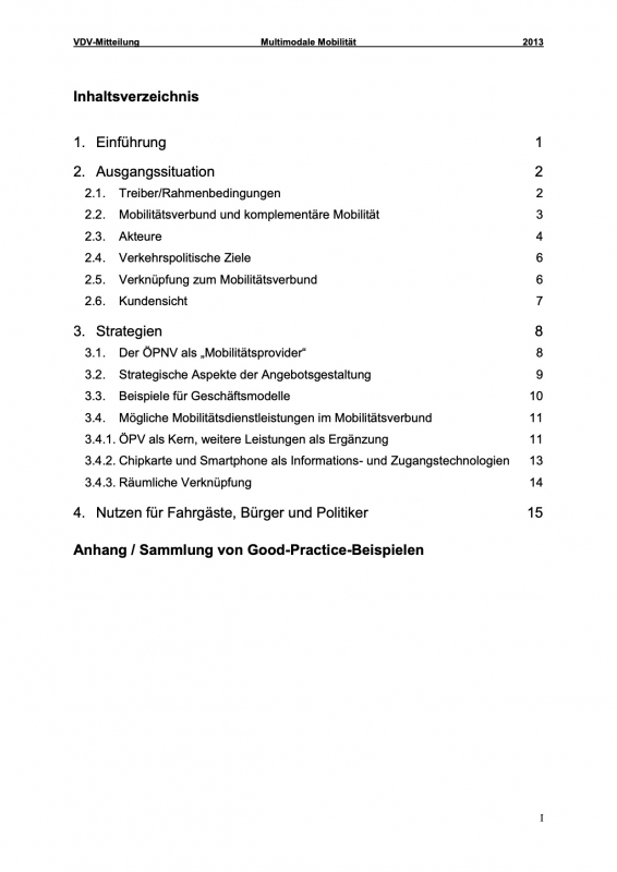 Mit dieser VDV?Mitteilung wird das Positionspapier „Der ÖPV: Rückgrat und Motor eines zukunftsorientierten Mobilitätsverbundes“ um Hintergründe und interne strategische Überlegungen ergänzt. In dieser VDV?Mitteilung werden die Treiber der Entwicklung zu einer multimodalen Mobilität benannt sowie die Ziele der einzelnen Akteure und der Kunden herausgearbeitet. Ausgehend von dieser Analyse werden mögliche Strategien und damit zusammenhängende Geschäftsmodelle aufgezeigt. Es werden Nutzenaspekte multimodaler Mobilität für Kunden, Bürger und Politiker benannt. Eine Sammlung von aktuellen Umsetzungen und Kooperationsprojekten zum Thema multimodale Ergänzung der Angebote rundet die Mitteilung ab.