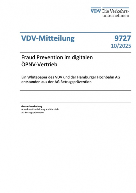 VDV-Mitteilung 9727: Fraud Prevention im digitalen ÖPNV-Vertrieb