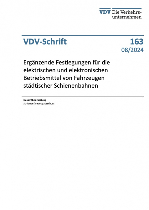 VDV-Schrift Nr. 163 „Ergänzende Festlegungen für die elektrischen und elektronischen Betriebsmittel von Fahrzeugen städtischer Schienenbahnen“[Print]