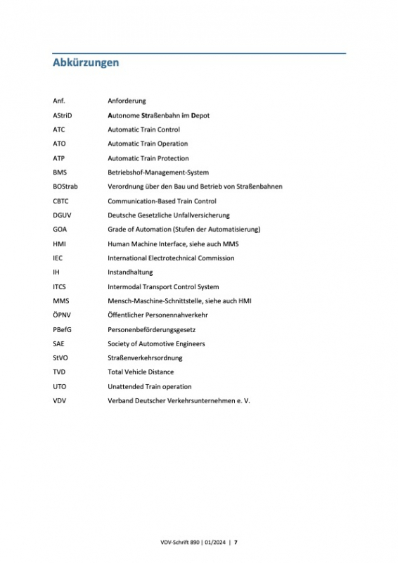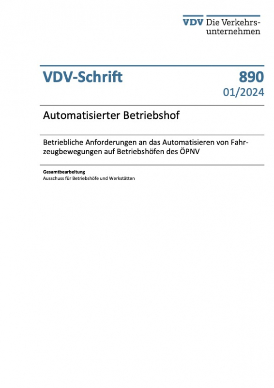 In einem ersten Schritt behandelt die VDV-Schrift 890 die Automatisierung der Fahrtverläufe auf Straßen- und Stadtbahnbetriebshöfen, da es dafür schon reale Anwendungsfälle aus der Praxis gibt. Zu einem späteren Zeitpunkt ist es ebenso möglich, die Automatisierung von Busbetriebshöfen mit einer Aktualisierung dieser Schrift zu betrachten.