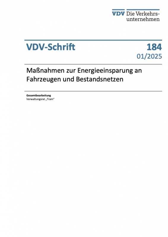 VDV-Schrift Nr. 184: Maßnahmen zur Energieeinsparung an Fahrzeugen und Bestandsnetzen | Saving Energy on Vehicles and Tram Networks [PDF]