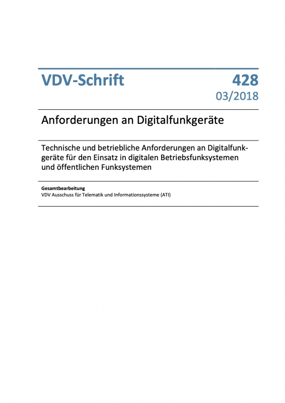VDV-Schrift 428 Anforderungen an Digitalfunkgeräte [eBook im pdf-Format]